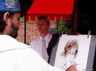 Kreslením portrétů navazuje na kaligrafické tušové zkratky, lavírované vodou, někdy karikaturně provedené jindy v lyrických stopách nebo groteskní skicou dvojic, prostě tak jak vnímá prostředí kolem sebe.